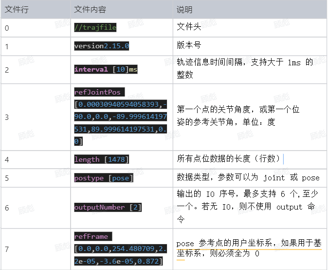 说明: 如果 interval[1]ms 当这个时间为 1 的时候,轨迹间隔和机器人控制器执行间隔相