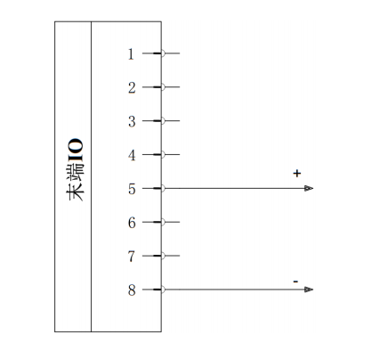 接线方法:如下图双针模式2接线,将电源线(5 )与TI1/TO1/PWR1线(7)连接,接地线(8)与TI0/TO0/GND1线(6)连接。