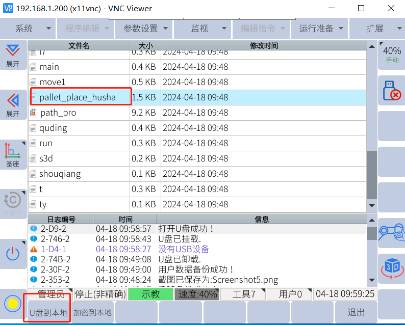 点击u盘到本地即可导入u盘里的Jbi文件至机器人
