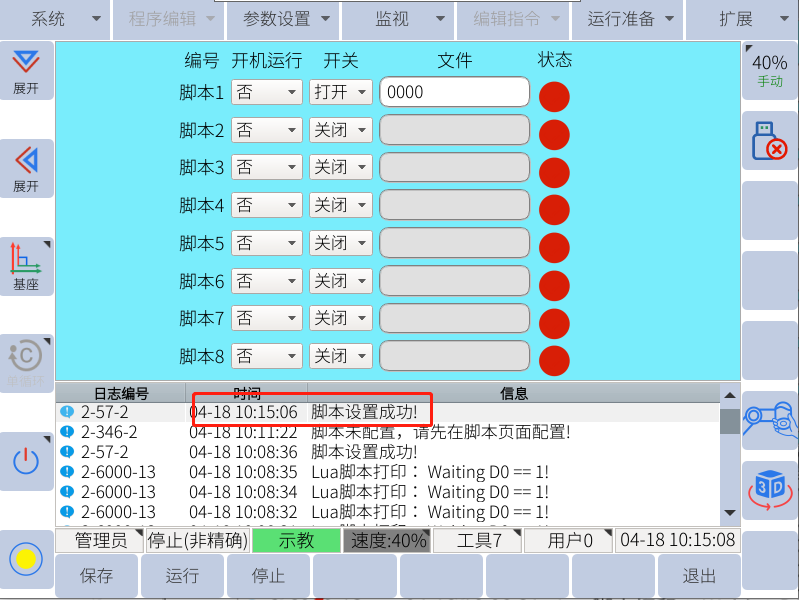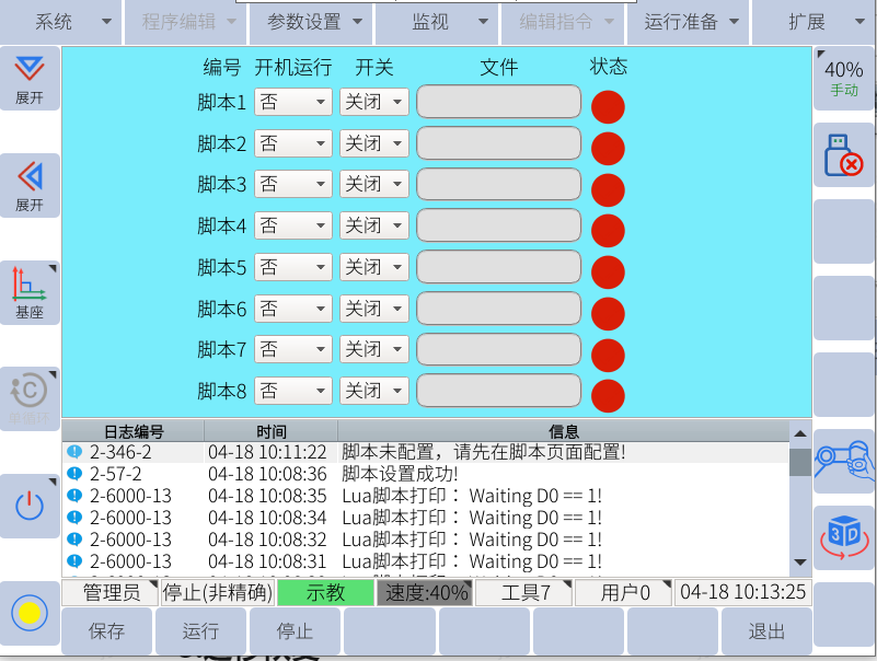 一般使用u盘进行单个lua文件的恢复(导入),先确认u盘中有rbctrl 文件夹且rbctrl文件夹里有luadir这个文件夹且该文件夹下面有lua文件